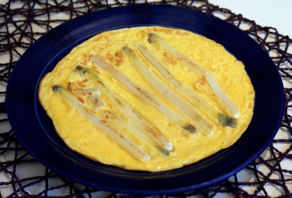 Jajka miksujemy z mąką na jednolitą masę. Dodajemy przyprawy i wylewamy na patelnię z odrobiną oliwy. Od razu układamy szparagi. Gdy jajka się zetną, przerzucamy na drugą stronę i jeszcze chwilę smażymy. Gotowe!